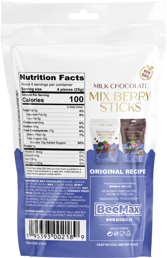 Beemax - Milk Chocolate Covered Dried Mix Berry Sticks