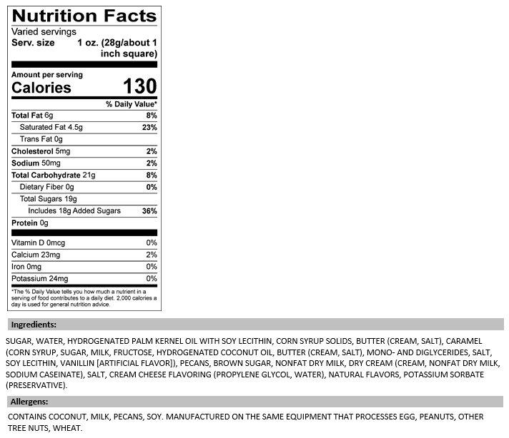 So many flavors combine to make our Caramel Pecan Cheesecake Fudge A-MAZ-ING! You’ll taste creamy cheesecake, crunchy pecans and decadent caramel all in our sweet Vanilla Fudge. This flavor promises to be a new favorite!