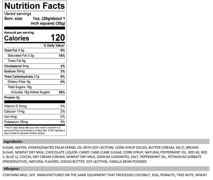 Valley Fudge & Candy - Peppermint Bark 1/2 lb. Fudge Bar